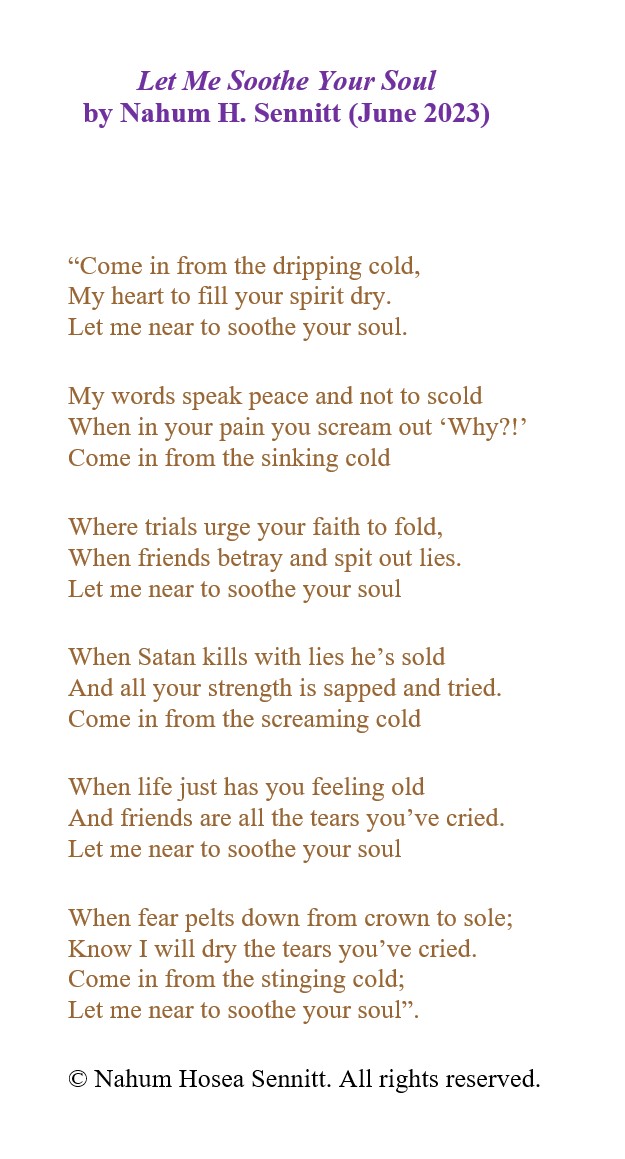 This is a poem that I wrote last year in June when I was really struggling in my faith. It is a villanelle that was written in the first person, from Jesus’ point of view to His sheep who are struggling in trials. May it bless others in the faith who are going through hardship. God bless, Nahum.